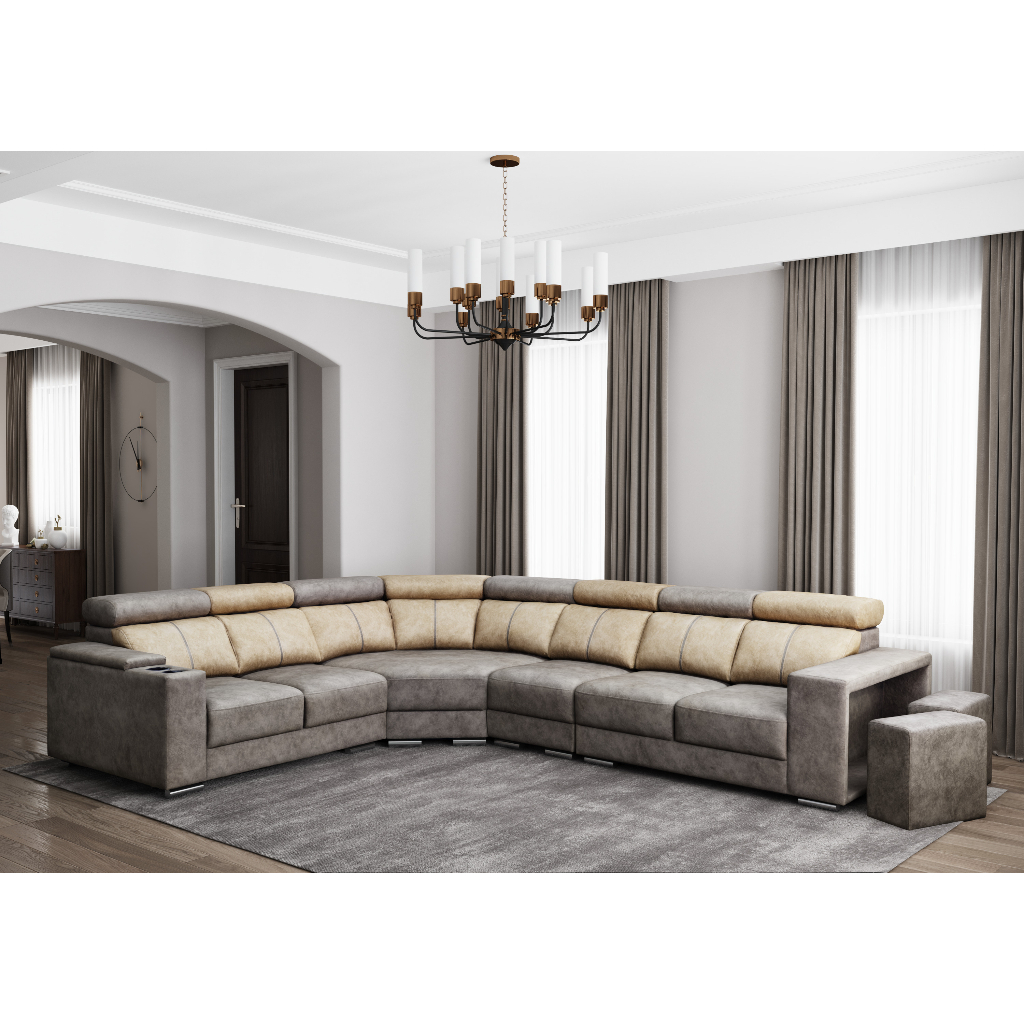 Experience ultimate comfort and style with our 6-seater sofa. This spacious and inviting seating solution comes with a convenient side stool, perfect for added relaxation and functionality. Indulge in ultimate comfort with the adjustable headrest feature, allowing you to find the perfect position for your head and neck. Plus, enjoy movie nights and gatherings even more with the built-in cup holder, making it a must-have addition to your living space.