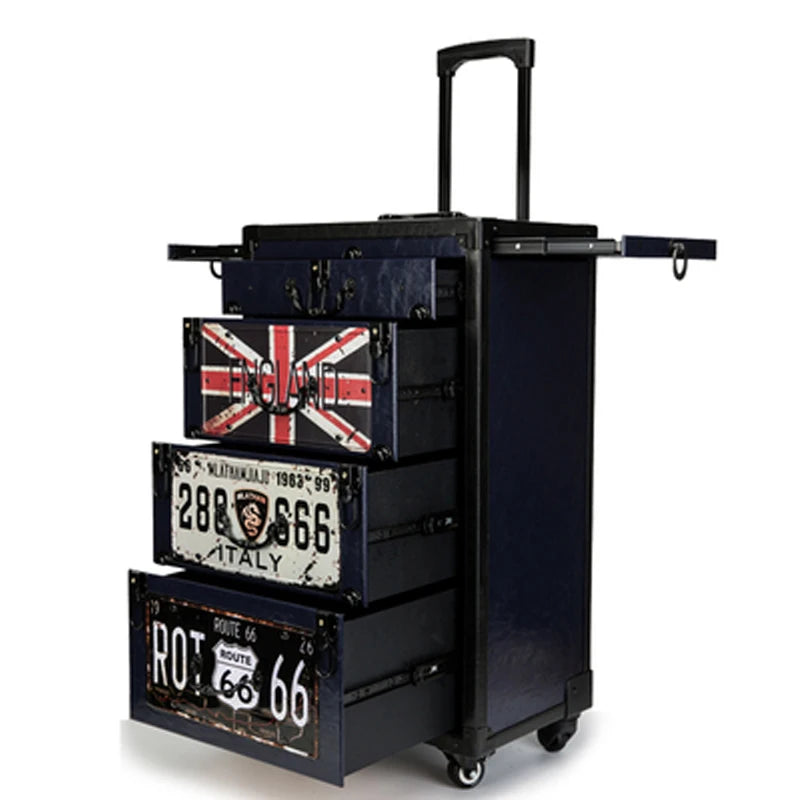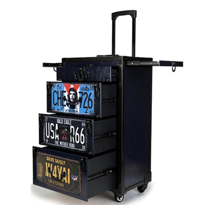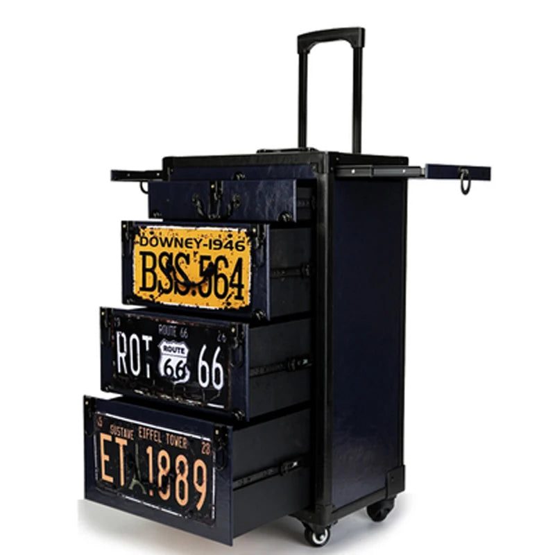 Women Retro Trolley Cosmetic case,Nails Makeup Toolbox Rolling luggage Suitcases,Multiple drawers Beauty Tattoo Storage Box