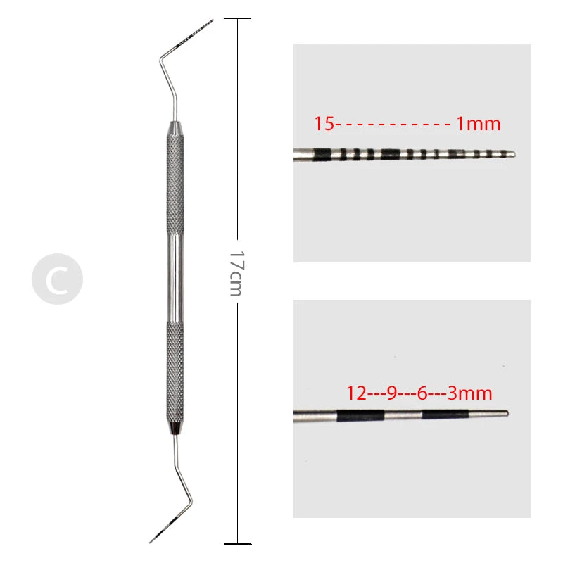 1 件牙科牙周探针带刮治器 1 件不锈钢口腔牙齿探测器牙髓病器械工具